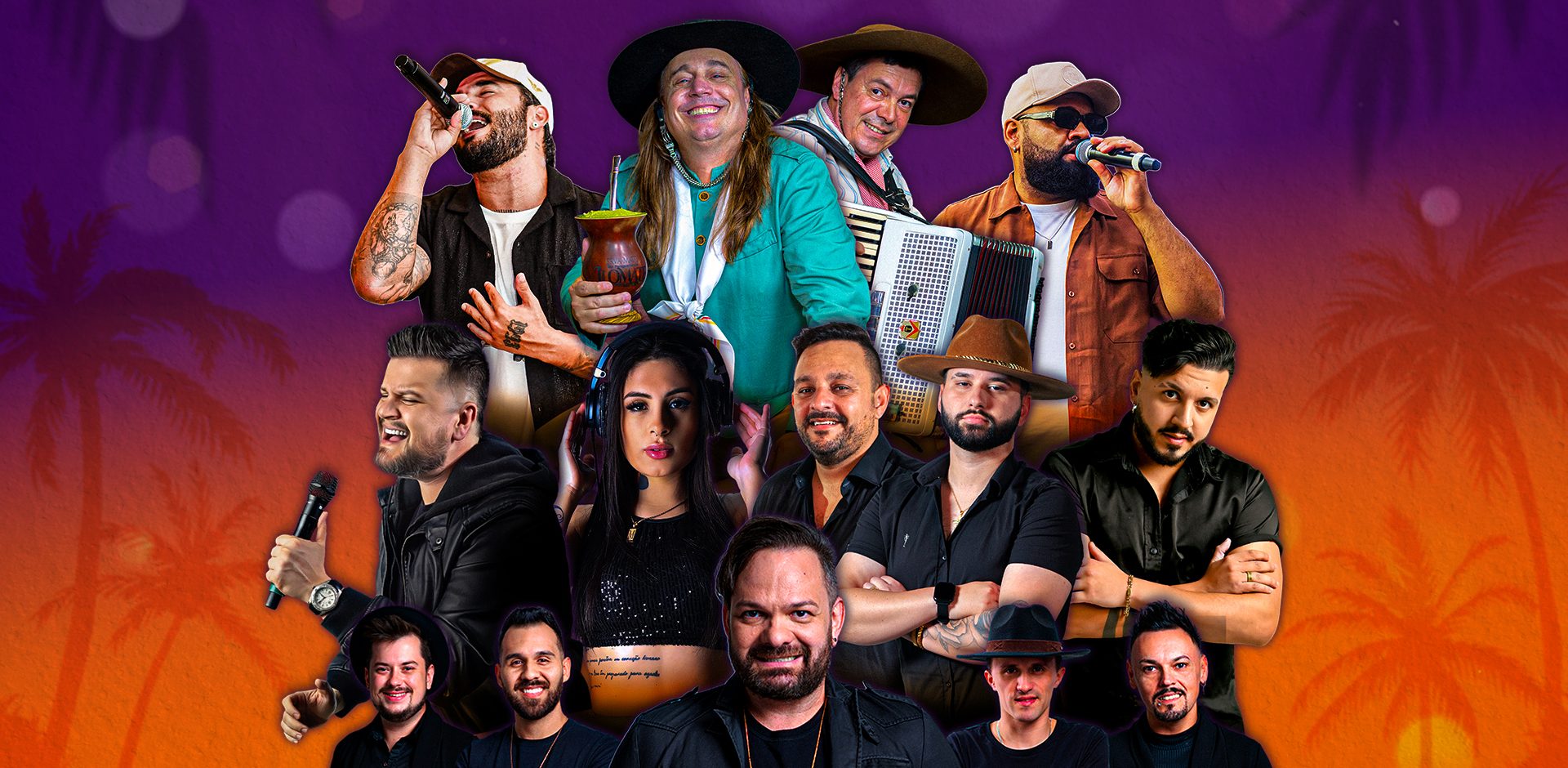 A curadoria da Tchê Produções reúne oito artistas locais e regionais de destaque, contemplando sertanejo, pop, pagode, vanera e música eletrônica. Os shows acontecem ao longo do dia: