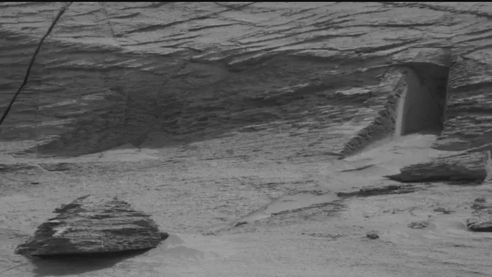 A foto de uma formação geológica em Marte viralizou nas redes sociais, suscitando comentários apreensivos e teorias mirabolantes sobre seu aspecto.