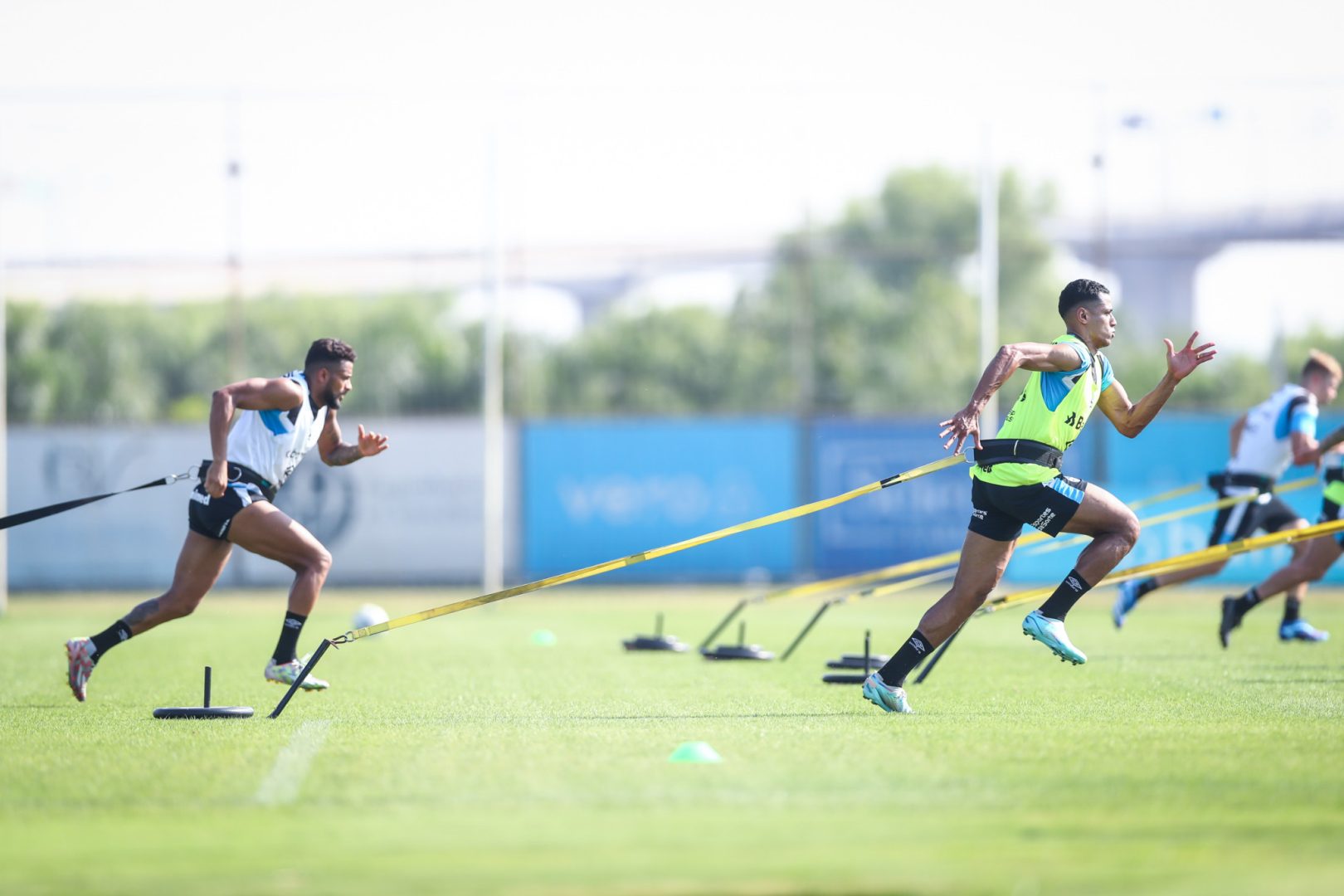 Após o aquecimento, o preparador Reverson Pimentel comandou um circuito de exercícios físicos voltados para o arranque e a velocidade.