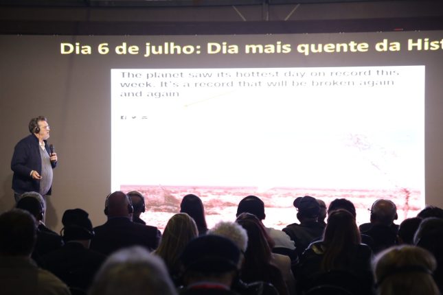 Gazzoni iniciou dando um panorama dos principais acontecimentos climáticos dos últimos dias, como, por exemplo julho, que teve o dia mais frio e o dia mais quente do ano na mesma semana, e foi considerado o mês com as temperaturas mais altas no mundo. “A velocidade das mudanças climáticas têm acontecido em uma escala cada vez mais rápida. Antes falávamos em milênios, agora em décadas”, afirma.