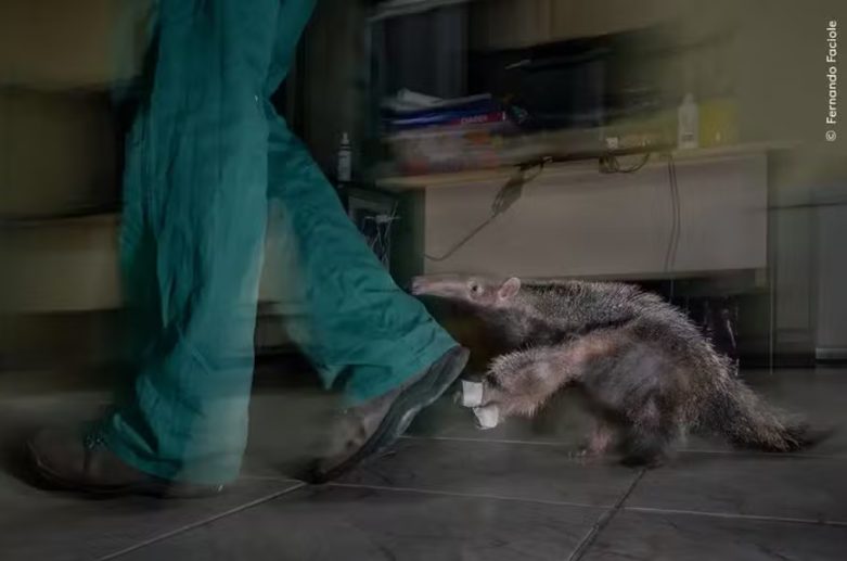 O fotógrafo brasileiro Fernando Faciole foi um dos grandes destaques da edição de 2025 do concurso Fotógrafo de Vida Selvagem do Ano, promovido pelo Museu de História Natural de Londres. Ele conquistou o Prêmio Impacto, que reconhece histórias de esperança e sucesso em conservação ambiental, com uma imagem que retrata um filhote órfão de tamanduá-bandeira seguindo seu cuidador em um centro de reabilitação no Brasil.