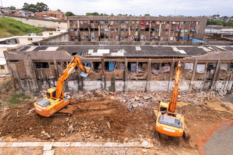 Com a desocupação desta semana e a demolição dos pavilhões A e B, terá prosseguimento o trabalho – com a limpeza, a preparação do terreno e a execução do serviço dos módulos restantes. No lugar dos dois prédios, serão construídos mais seis módulos de vivência, com 1.320 vagas, totalizando assim 1.884 vagas.