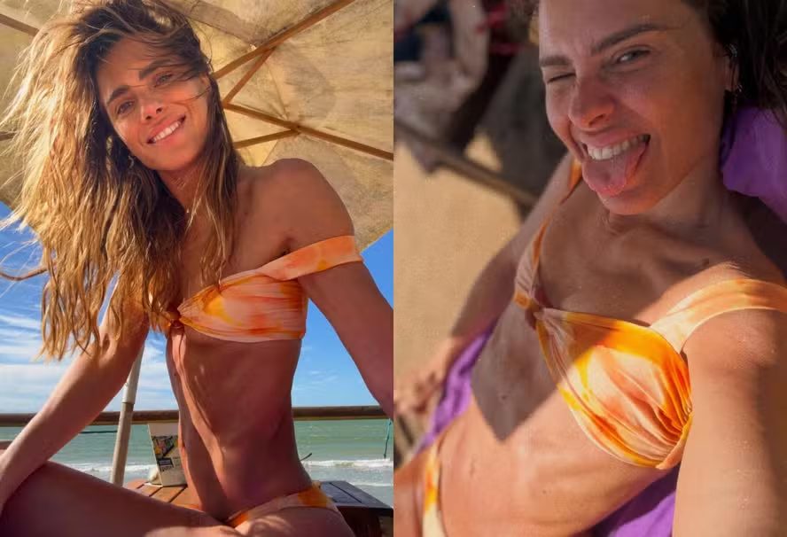 Carolina Dieckmmann, de 47 anos, compartilhou cliques renovando o bronze em Manguinhos, na Região dos Lagos do Rio de Janeiro, e deixou os seguidores encantados. De biquíni laranja, cabelo solto e sorriso no rosto, a atriz surgiu à beira-mar e fez um convite animado na legenda: “Sextou! Bora pegar um sol? E dar um mergulho comigo, topa? Bora!”.
