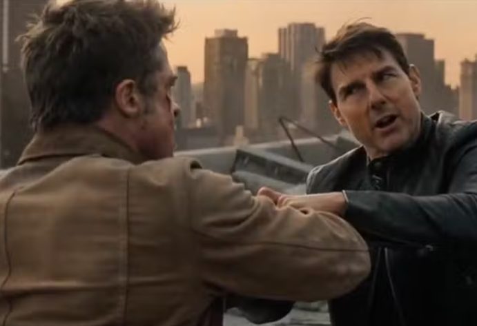 A nova preocupação da indústria cinematográfica é uma breve sequência em que versões digitais de Brad Pitt e Tom Cruise protagonizam uma intensa cena de ação no topo de um prédio em ruínas, com um acabamento visual que lembra um filme de grande orçamento.