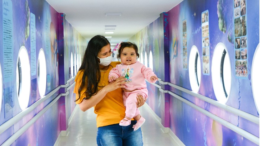 Maria Manuella, de 1 ano de idade, foi uma das pacientes que passaram por um transplante hepático no ano passado, no Pequeno Príncipe. Diagnosticada com uma doença rara que progride para insuficiência hepática –, ela precisava do procedimento para salvar-se. A mãe, Odissea Almeida da Cruz, conta que percebeu que alguma coisa estava errada com a filha antes de ela completar 1 mês de vida. “Ela estava há 27 dias com icterícia, e o médico disse que o normal era no máximo sete. No hospital em Rio Branco (AC) procuraram o que ela tinha durante um mês, mas sem especialista e sem patologista não conseguiram diagnosticar”, lembra.