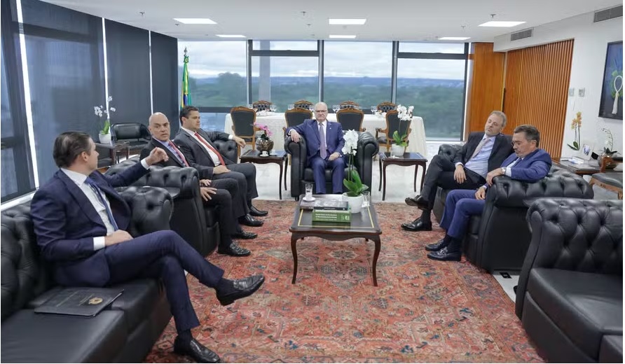 O presidente do Supremo Tribunal Federal (STF), ministro Edson Fachin, recebeu na manhã desta terça-feira o presidente do Senado, Davi Alcolumbre (União Brasil-AP); o presidente da Câmara dos Deputados, Hugo Motta (Republicanos-PB); o presidente do Tribunal de Contas da União (TCU), Vital do Rêgo; o vice-procurador-geral da República, Hindemburgo Chateaubriand; o vice-presidente do STF, Alexandre de Moraes; além dos ministros Gilmar Mendes e Flávio Dino.