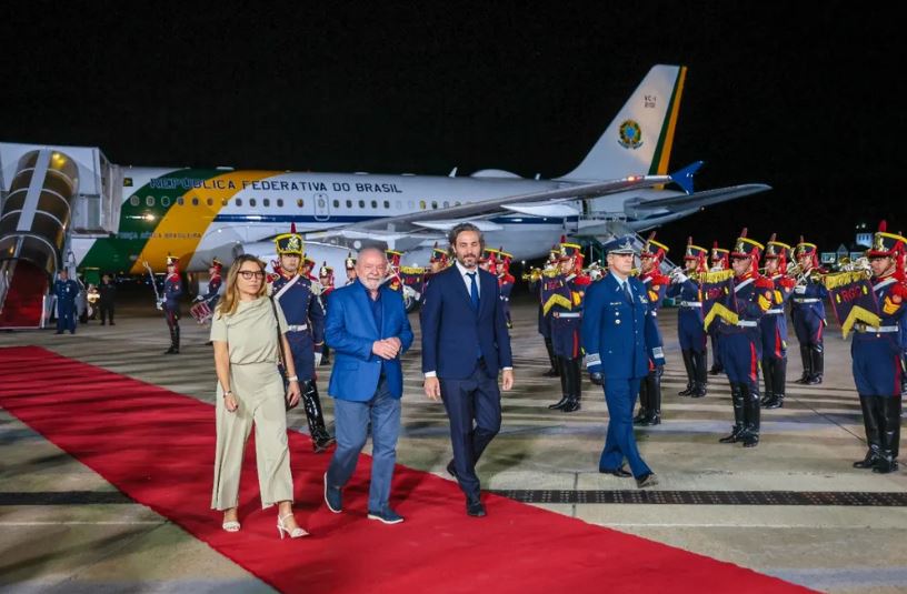 O presidente Luiz Inácio Lula da Silva (PT) desembarcou, na noite deste domingo (22), em Buenos Aires, capital da Argentina, onde cumprirá primeira agenda internacional como chefe de Estado no atual mandato. Acompanhado da primeira-dama, Janja, o petista foi recebido com honrarias do governo vizinho.