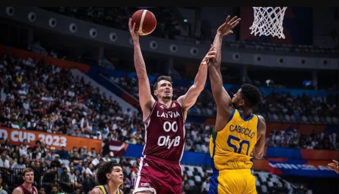 Precisando de uma vitória para avançar para as quartas de final do Mundial, o Brasil acabou derrotado pela Letônia por 104 e 84 e deu adeus ao torneio. Contudo, pela boa campanha que vinha fazendo, existia a grande chance de a seleção conseguir uma vaga nos Jogos Olímpicos de Paris por uma combinação tripla de resultados.