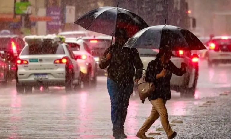 O cenário inclui ainda descargas elétricas, eventual queda de granizo e ventos com rajadas em torno de 50 km/h, podendo ultrapassar 75 km/h em pontos isolados.