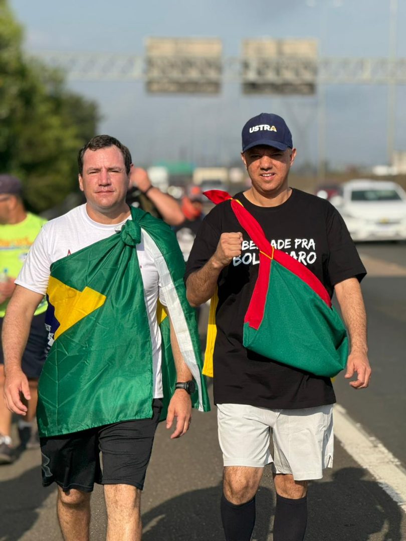 O vereador Coronel Ustra já havia participado da caminhada nacional: retornou dos Estados Unidos e seguiu direto para Brasília, onde caminhou sábado e domingo ao lado de Nikolas Ferreira e milhares de brasileiros.