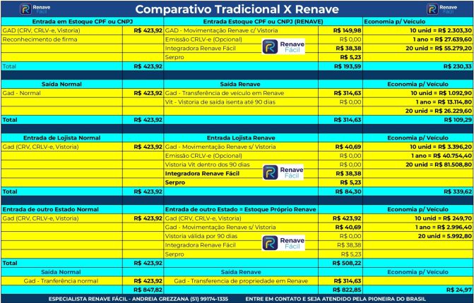 A Renave Fácil é uma integradora criada em 24 de junho de 2020, em Santa Catarina. Trata-se de uma empresa pioneira em estudar e aplicar o método do Renave, auxiliando os lojistas a colocá-lo em prática, em toda a extensão nacional. Atualmente, Andreia Grezzana atua como representante e está à frente da instituição desde julho de 2025. Para mais informações, acessar o site https://renavefacil.net/, o perfil do Instagram https://www.instagram.com/renavefacil_br/, ou entrar em contato pelo número (51) 99174-1335.