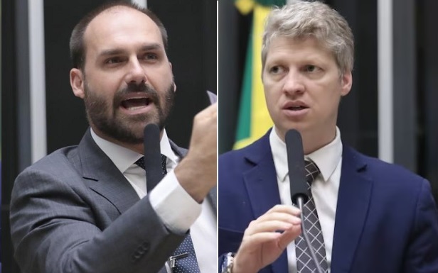 O deputado federal Eduardo Bolsonaro (PL-SP) rebateu nesse domingo (2), uma publicação compartilhada por Marcel van Hattem (Novo-RS), após o parlamentar comemorar os 31 votos que recebeu na eleição para a presidência da Câmara, realizada no sábado (1º).