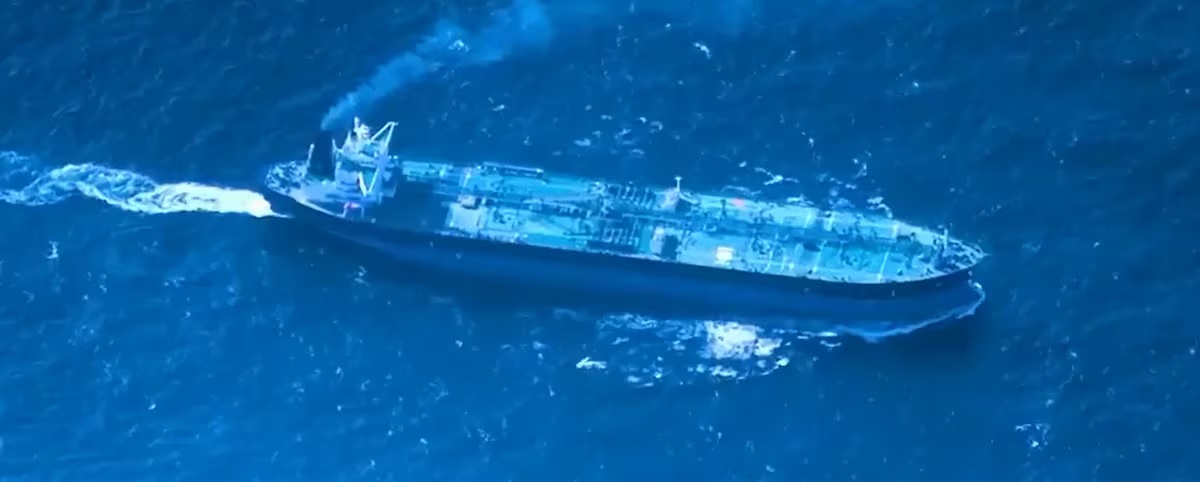 O órgão militar também divulgou imagens aéreas do navio navegando em alto-mar. Diferentemente de registros anteriores, o vídeo não mostra helicópteros militares se aproximando da embarcação nem a atuação direta de forças americanas no convés.