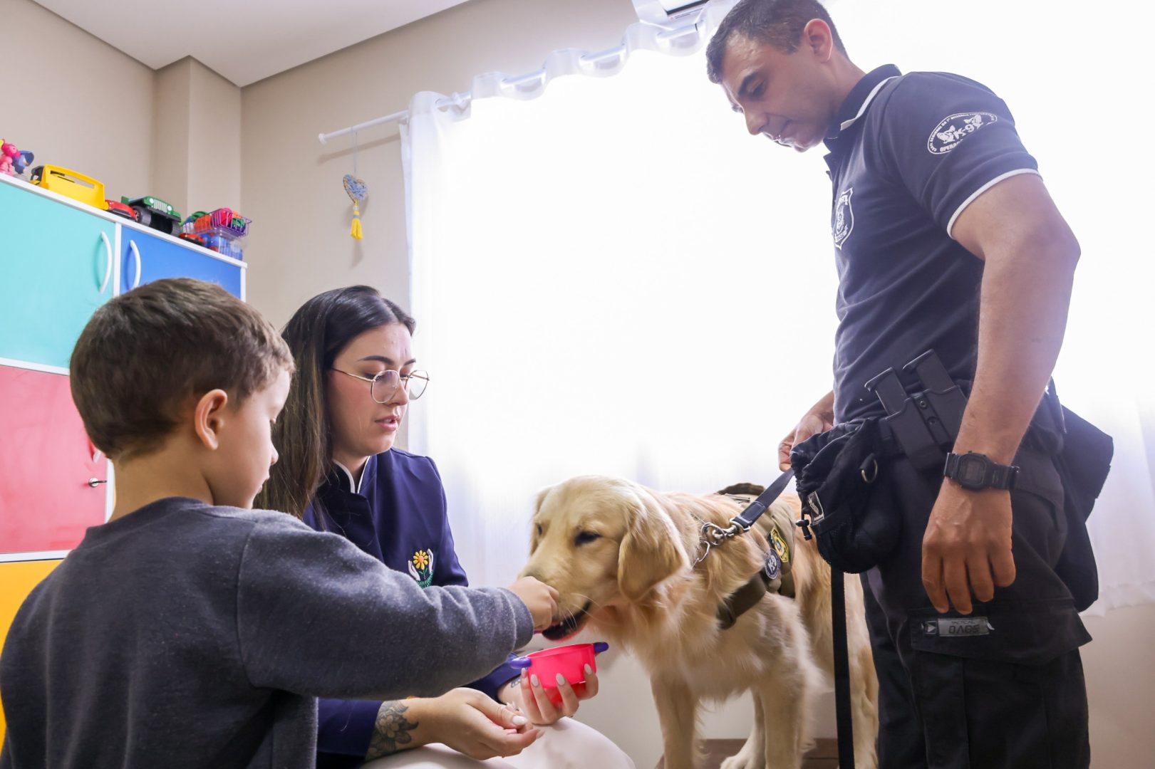 A escolha dos animais é criteriosa. Ao chegarem aos canis, passam por testes de comportamento que identificam aptidões. Os mais impulsivos são treinados para operações de detecção e captura; já os dóceis e pacientes, geralmente Golden Retrievers e Border Collies, são direcionados para a cinoterapia. Durante os primeiros 30 dias, conhecidos como “janela social”, os cães convivem com crianças, idosos e outros animais, sendo expostos a diferentes estímulos para avaliar sua resposta.