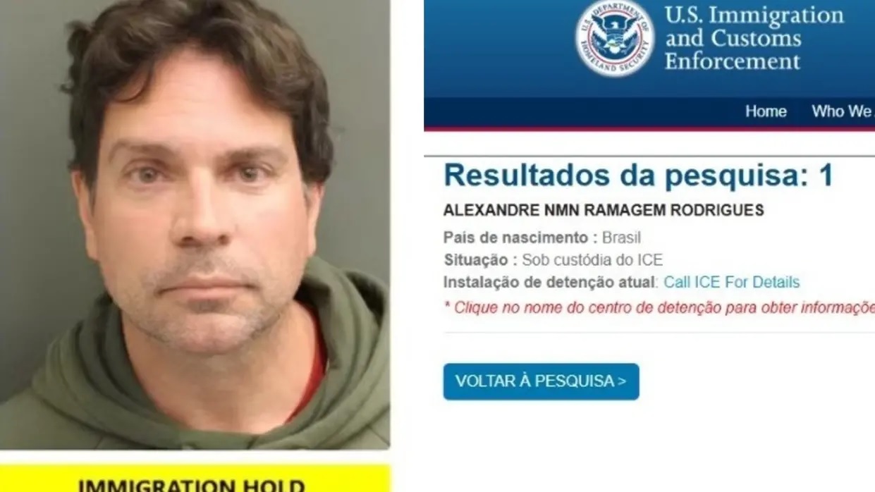 Embaixo da imagem, há a indicação de que ele foi preso por questões ligadas à imigração. Não constam informações sobre as acusações de Ramagem. Nesta terça (14), já era possível localizar o nome de Ramagem no sistema online de detentos da agência, que também disponibiliza informações de contato para familiares. No nome de Ramagem aparece a sigla “NMN”, que, em inglês, quer dizer “no middle name” (sem nome do meio).