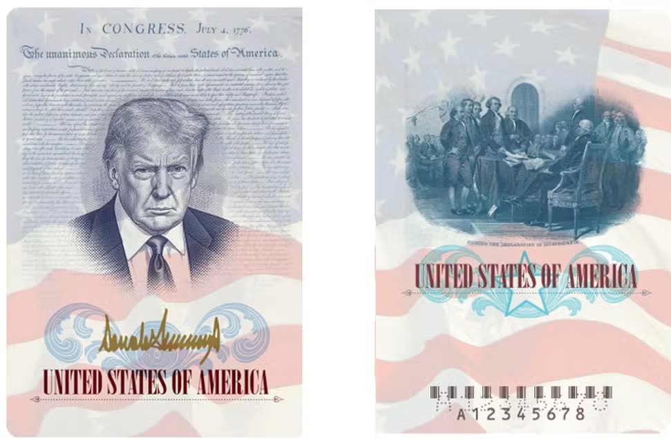 O Departamento de Estado afirmou que vai lançar um número limitado de versões comemorativas com o rosto de Donald Trump. Elas terão a mesma validade e os mesmos recursos de segurança do modelo tradicional. Essa não é a primeira medida anunciada pelo governo dos Estados Unidos que envolve a imagem de Donald Trump em objetos públicos.