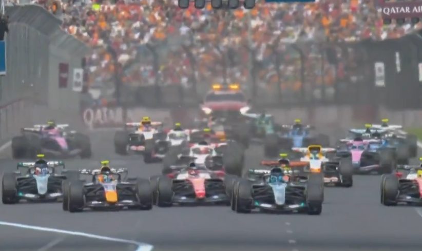 Apesar do confronto direto entre a Mercedes e a Ferrari, que correram em uma F1 distinta do resto do grid, a alemã seguiu muito à frente da rival italiana. Mesmo perdendo a liderança após a forte largada de Leclerc, Russell contou com a estratégia da Mercedes de parar na primeira bandeira amarela; aí, bastou gerenciar a vantagem sobre a adversária, que também pôs Lewis Hamilton em quarto lugar.