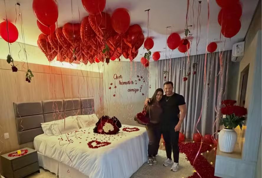 Gracyanne Barbosa, de 42 anos, foi pedida em namoro por Gabriel Cardoso, de 35, no último domingo (25). O empresário preparou uma surpresa romântica, com decoração de flores, pétalas e velas em um quarto, e oficializou o pedido à ex-BBB. “Obviamente, disse sim”, escreveu Gracy nas redes sociais ao compartilhar registros do momento especial.