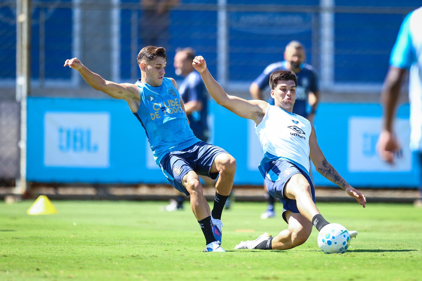 Na sequência, um trabalho técnico movimentou o elenco, com o objetivo de fazer a abertura das jogadas, cruzamento na área e a conclusão para o gol. O treinador gremista assumiu a atividade tática logo depois, já projetando o duelo diante da equipe do Oeste Catarinense.