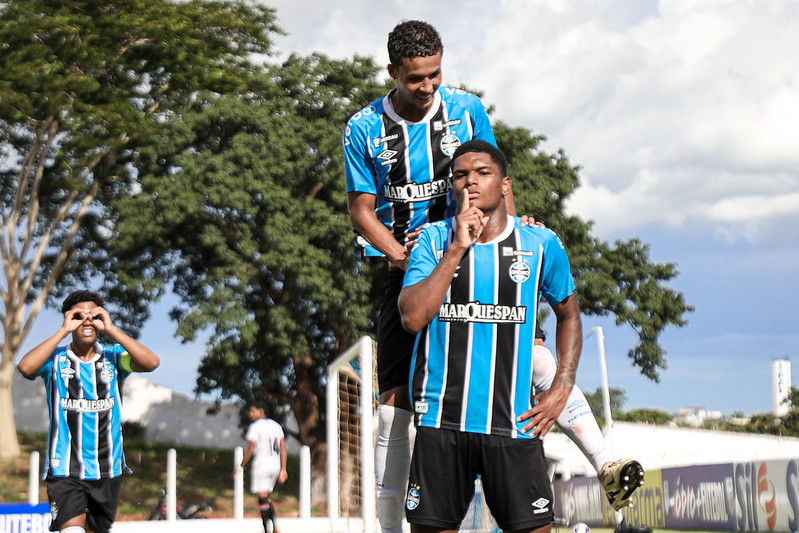 O Grêmio garantiu vaga na terceira fase da Copa São Paulo de Futebol Júnior ao derrotar o Atlético de Alagoinhas-BA por 3 a 1, na tarde desta segunda-feira (12), no estádio Municipal Evandro de Paula, em Santa Fé do Sul (SP). Os gols do Tricolor foram marcados por Felippe Guimarães, Harlley e Iago Valeije, enquanto Bernardo Ferreira, contra, descontou para o adversário.