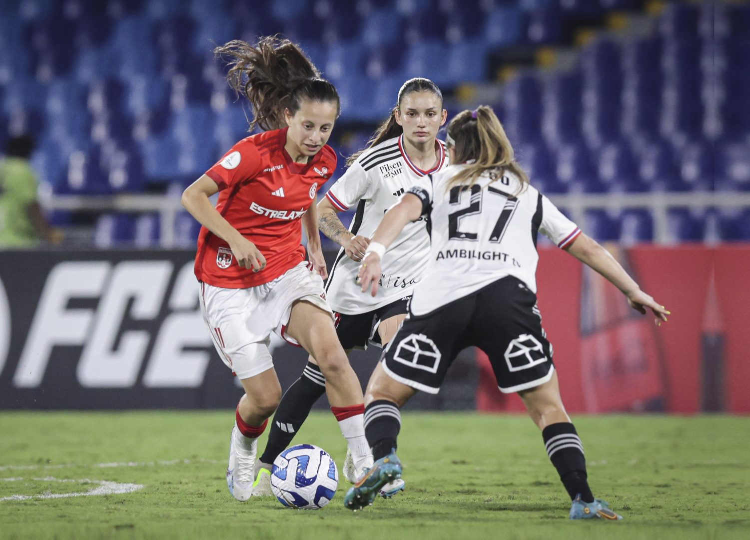 As coloradas abriram vantagem de 2 a 0, com gols marcados por Priscila aos 16 e 19 minutos de confronto. O Colo-Colo descontou aos 28 minutos do primeiro tempo, com Bogarín.