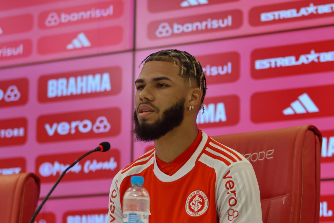 O lateral direito Nathan foi apresentado oficialmente pelo Inter na manhã deste sábado (31), na sala de coletivas do estádio Beira-Rio, em Porto Alegre.