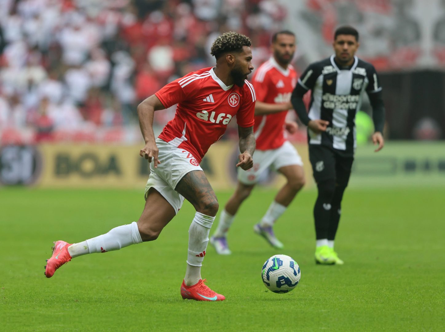 Depois do susto, só deu Inter. Brian Aguirre acertou a trave do Ceará (o “Vozão”, no apelido popular) aos 7 minutos e, aos 16, foi a vez de Borré parar em Bruno Ferreira.