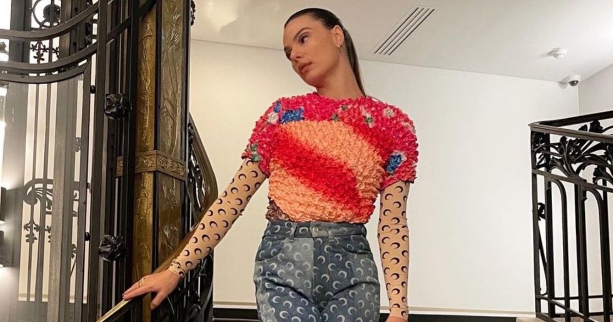 “Acompanhar o desfile da coleção Hard Drive da Marine Serre foi como estar dentro de um ateliê e ver o processo de criação, do corte à costura. Foi lindo ver uma coleção tão diversa e coesa ao mesmo tempo. Uma estética punk, com makes mais elaboradas. As joias piscavam. Foi uma coleção muito contemporânea e forte”, afirma Isis.