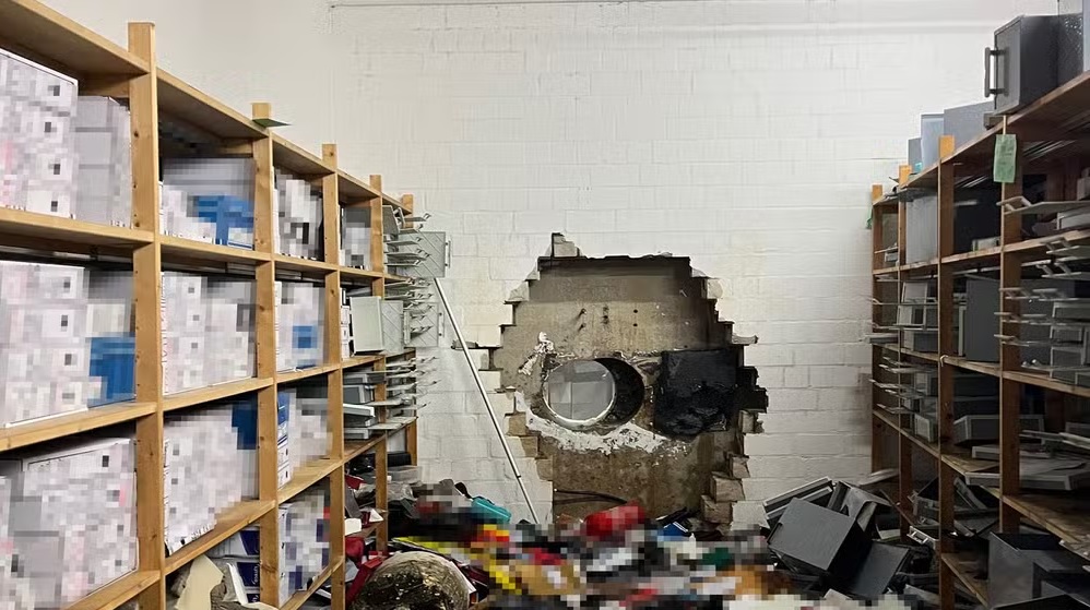 De acordo com as investigações, os ladrões conseguiram acessar o prédio através da garagem, romperam uma sala de arquivos e perfuraram a parede até chegar ao cofre principal.