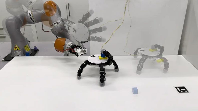 Outro ponto que se destaca é a capacidade da mão se desacoplar do corpo principal do robô e se mover de forma independente. Nessa configuração, ela se transforma em um pequeno robô rastejante, utilizando os próprios dedos como se fossem pernas. Em algumas situações, o movimento ocorre com o apoio dos nós dos dedos, enquanto as extremidades continuam disponíveis para manipular objetos.