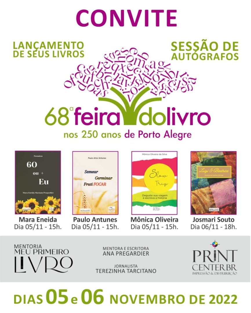 A escritora Ana Pregardier, única gaúcha membro da Academia de Artes, Letras e Cultura do Brasil, autora de mais de 30 obras, lançou neste ano a Mentoria “Meu Primeiro Livro”, na qual participaram, até o momento, 20 novos autores. Eles, além de escrever o primeiro livro, são orientados sobre como elaborar a obra, fazer a diagramação completa, capa, até chegar à gráfica.