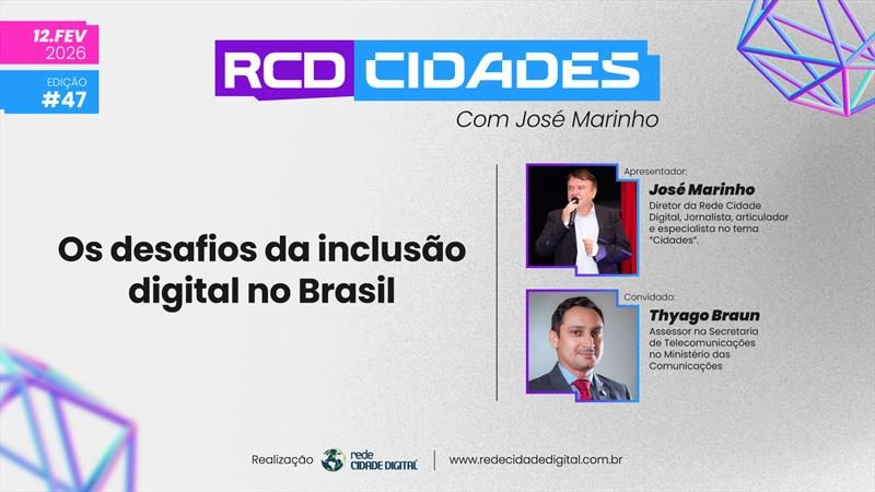 “O objetivo do RCD Cidades é trazer informações e conhecimentos que contribuam com a implantação de políticas públicas nas cidades capazes de melhorar a qualidade de vida das pessoas”, afirma José Marinho. A edição desta quinta-feira promete detalhar como ações do Ministério das Comunicações e inovações tecnológicas podem ajudar na redução das desigualdades digitais e na modernização de serviços urbanos. (Com informações do portal Rede Cidade Digital)