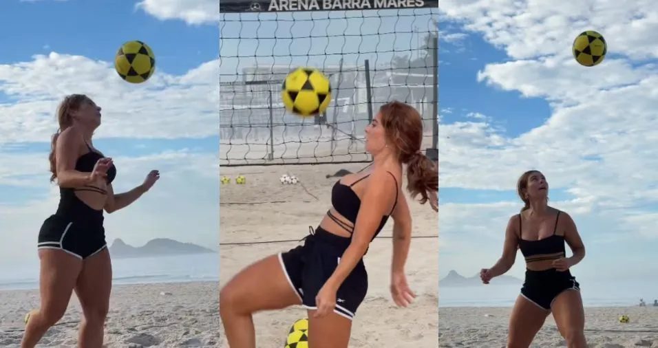 A atriz Paolla Oliveira, 43, compartilhou um novo vídeo nesta sexta-feira (10) mostrando a prática de futevôlei em uma praia do Rio de Janeiro. “Chama no ombrinho… Tentando entrar no ritmo”, escreveu Paolla Oliveira na publicação que viralizou, e já acumula mais de 2,5 milhões de visualizações.