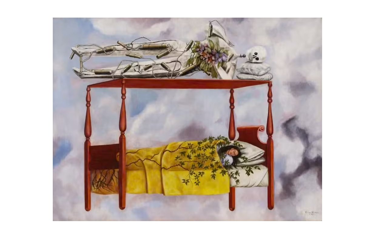 A pintura mostra Kahlo adormecida enquanto um esqueleto sorridente envolto em dinamite repousa sobre o dossel da cama. A obra havia sido estimada entre US$ 40 milhões e US$ 60 milhões. A venda também ultrapassou o recorde latino-americano anterior, de “Diego y Yo”, também da artista, vendido por US$ 34,9 milhões (R$ 186,7 milhões) em 2021.