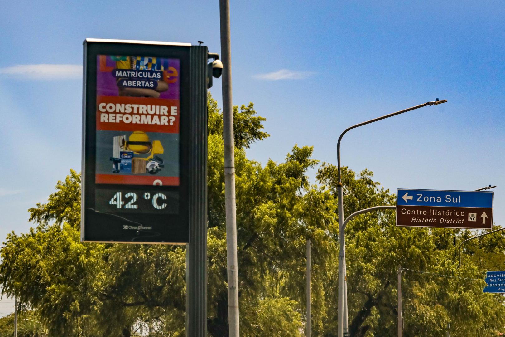 Nesta terça-feira (10), o sol aparece entre muitas nuvens no início do dia, com diminuição gradual da nebulosidade ao longo da manhã. À tarde, o sol predomina entre algumas nuvens esparsas. Os ventos sopram predominantemente de norte, com intensidade média de 10 km/h e rajadas em torno de 35 km/h. As temperaturas variam entre 21°C e 35°C.