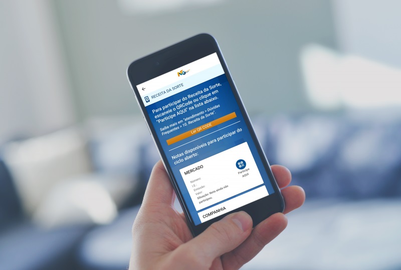 Receita da Sorte: distribui diariamente prêmios instantâneos de R$ 500 e de R$ 50. No total, são R$ 20,5 mil por dia. Em datas especiais, as premiações chegam a R$ 1 mil. Para concorrer, é preciso ter o aplicativo do NFG instalado e solicitar CPF na nota. No mesmo dia da compra, os contribuintes devem acessar a aba “Receita da Sorte” e clicar na nota fiscal ou fazer a leitura do QR Code do documento. O resultado sai na hora.