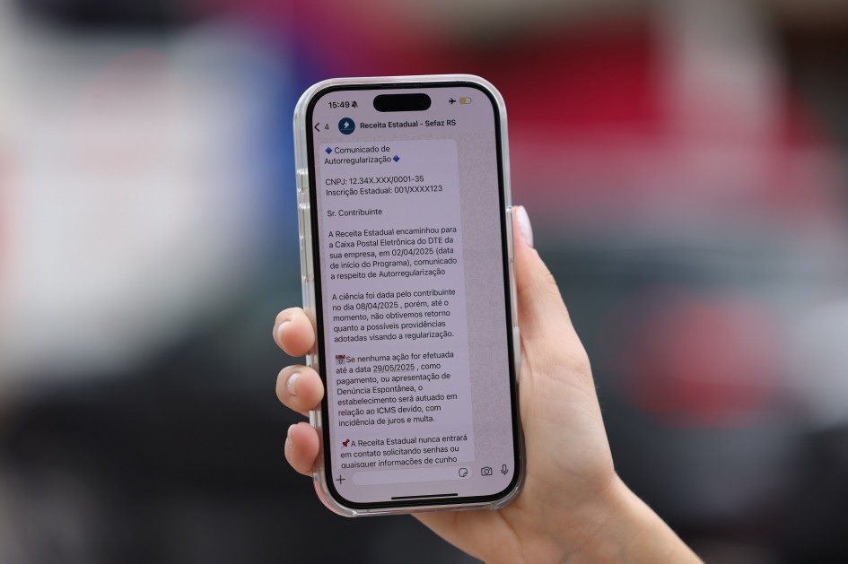 A Receita Estadual (RE), vinculada à Secretaria da Fazenda (Sefaz), agora usa o WhatsApp para se comunicar com empresas e cidadãos do Rio Grande do Sul. As mensagens alertam os contribuintes sobre pendências ou avisam acerca de oportunidades.