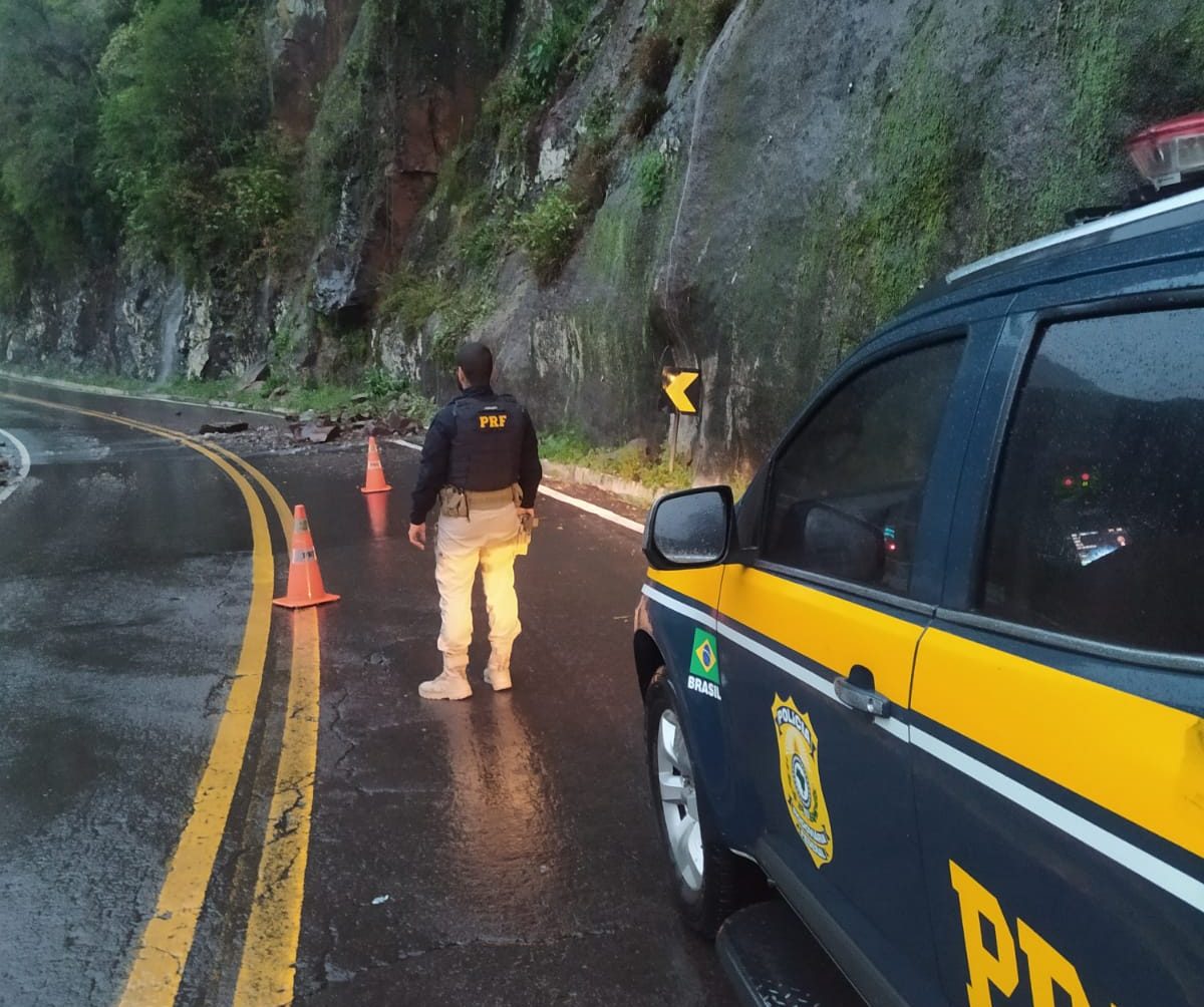 Em Jaquirana, no km 81,5, há bloqueio total provocado por queda de barreira e deslizamento de terra sobre a pista.