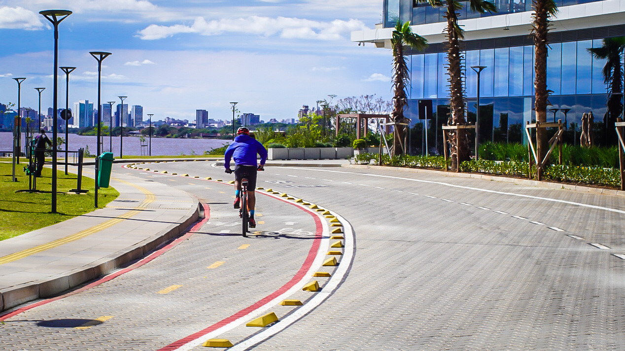 Após período de testes da ciclovia de contemplação implantada no Parque Pontal, que apresentou melhorias na segurança viária em relação ao trecho junto do leito viário, a Secretaria de Mobilidade Urbana (SMMU) e a Empresa Pública de Transporte e Circulação (EPTC) informam alteração no percurso cicloviário a partir deste sábado, 26, na antiga área do Estaleiro Só, na Zona Sul da Capital. O fluxo de bicicletas da Orla do Guaíba será direcionado para a ciclovia bidirecional do interior do parque, com 651 metros de extensão e separada do tráfego comum, como principal ligação entre a infraestrutura cicloviária das avenidas Diário de Notícias e Edvaldo Pereira Paiva. O traçado anterior, junto à avenida Padre Cacique, será desativado e destinado ao uso de pedestres.