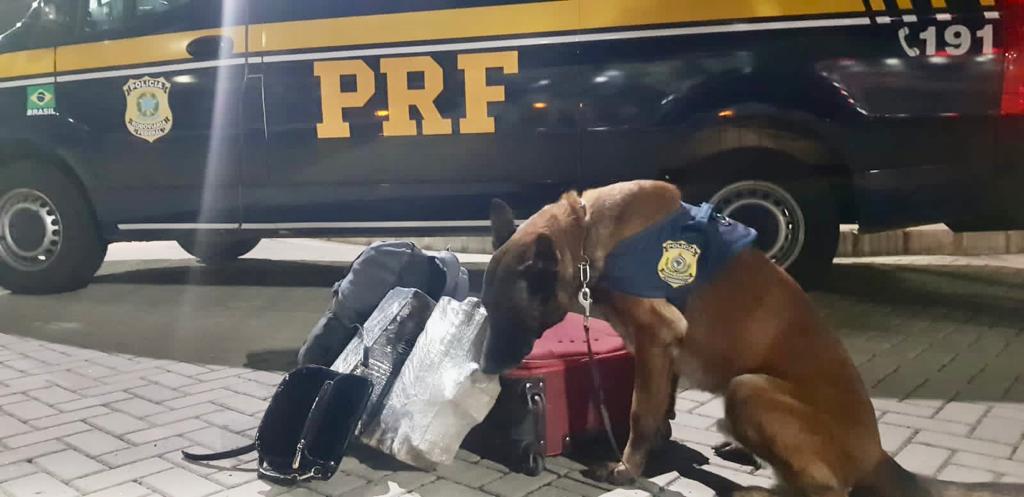 O veículo, que fazia a linha Florianópolis (SC)/Rio Grande, foi abordado durante uma operação de combate à criminalidade na rodovia. As drogas, que estavam em uma mala e em uma mochila, foram localizadas com o apoio de cães farejadores.