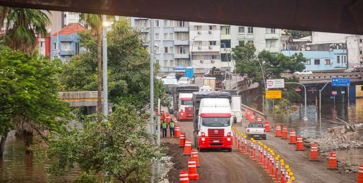 A manhã desta quinta-feira (16), registra fluxo crescente no corredor humanitário, no Centro. A via provisória, com 300 metros de extensão, teve a duplicação concluída no dia anterior e liga a avenida Castelo Branco ao Túnel da Conceição, permitindo após acesso às avenidas Osvaldo Aranha e Protásio Alves, duas das principais de Porto Alegre, entre outras ruas.