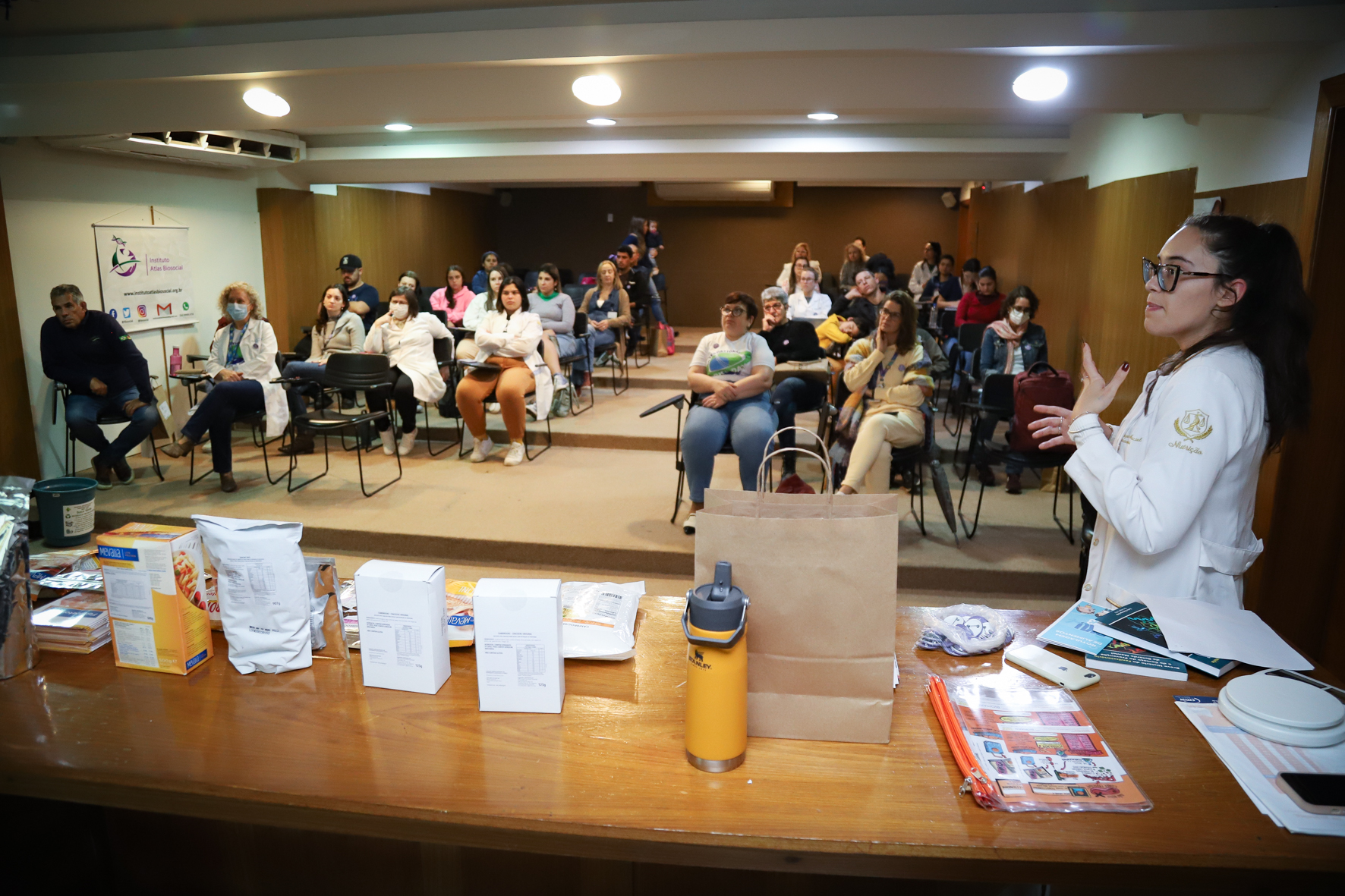 Durante a tarde, foi realizada oficina de leitura de rótulos de produtos e troca de receitas. “Saber identificar os ingredientes dos produtos e a quantidade é essencial para saber se ele pode ser consumido por pessoas com fenilcetonúria”, explica a nutricionista Fernanda Conde.