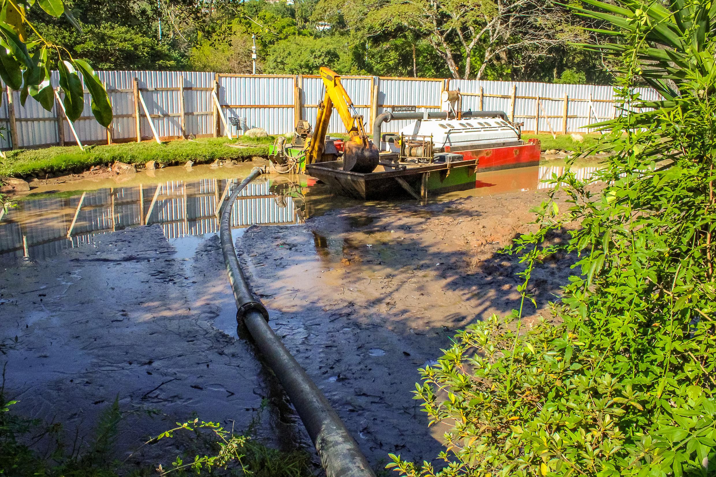 No início desta semana, os equipamentos de grande porte – escavadeira e draga – chegaram ao canteiro de obras. Nesta quinta-feira, 1º, foi a vez da máquina para perfuração do poço artesiano. As intervenções compreendem a instalação de uma ensecadeira, que está recebendo o material dragado. O poço artesiano que vai suprimir a escassez de água em períodos de seca também foi executado.