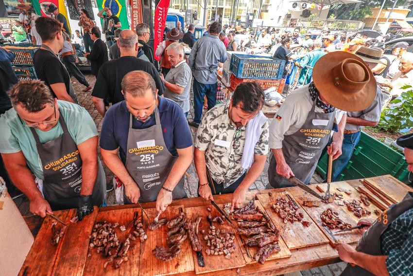 O tradicional Assado e Paella Solidária ocorre nesta quarta-feira, 15, a partir das 12h, no Largo Glênio Peres, no Centro de Porto Alegre. A atividade gratuita prevê a distribuição de 1.250 quilos de carne e 900 quilos de paella gaúcha, acompanhados de pão, refrigerante e água.