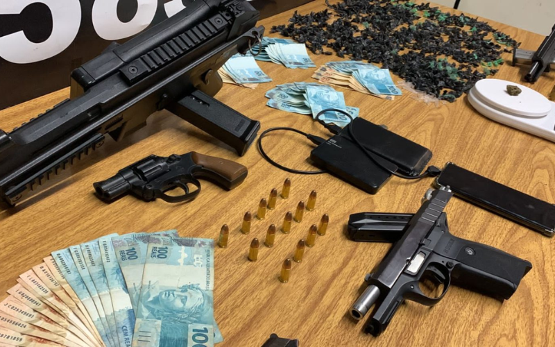 Os policiais apreenderam três pistolas, uma réplica de fuzil, um simulacro de revólver, dinheiro, drogas, celulares e um Porsche Cayenne. O veículo de luxo era utilizado pela mulher do líder da quadrilha, que comandava o bando de dentro do sistema prisional.