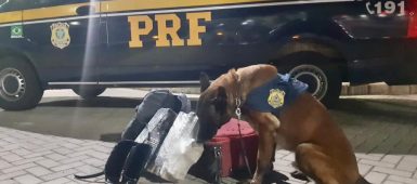 Com o apoio de cães farejadores, Polícia Rodoviária Federal apreende drogas em ônibus na Freeway