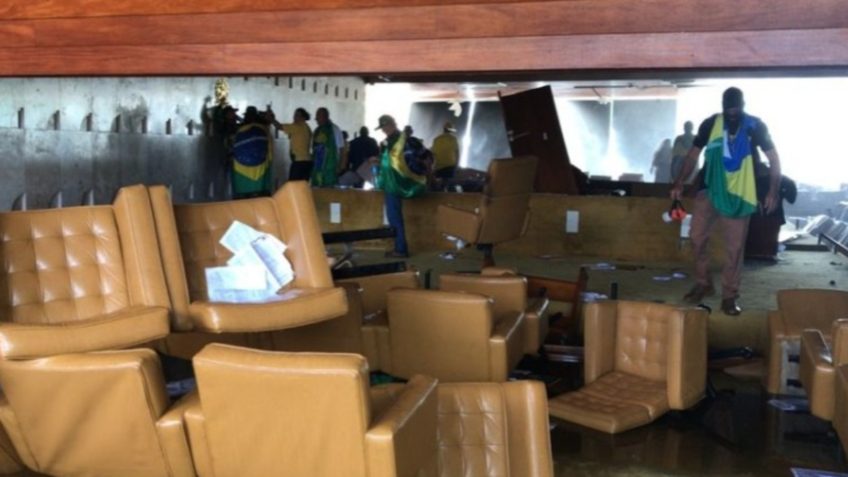 O comerciante foi filmado do lado de fora do STF chutando grades de contenção antes do início da invasão. Ele também aparece em imagens dentro do prédio depredado.