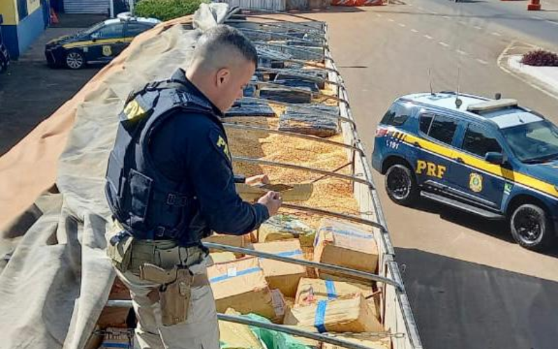 Na manhã desta quarta-feira (14), a PRF (Polícia Rodoviária Federal) apreendeu uma carga de quase três toneladas de maconha que era transportada em uma carreta carregada com milho. Um traficante foi preso.