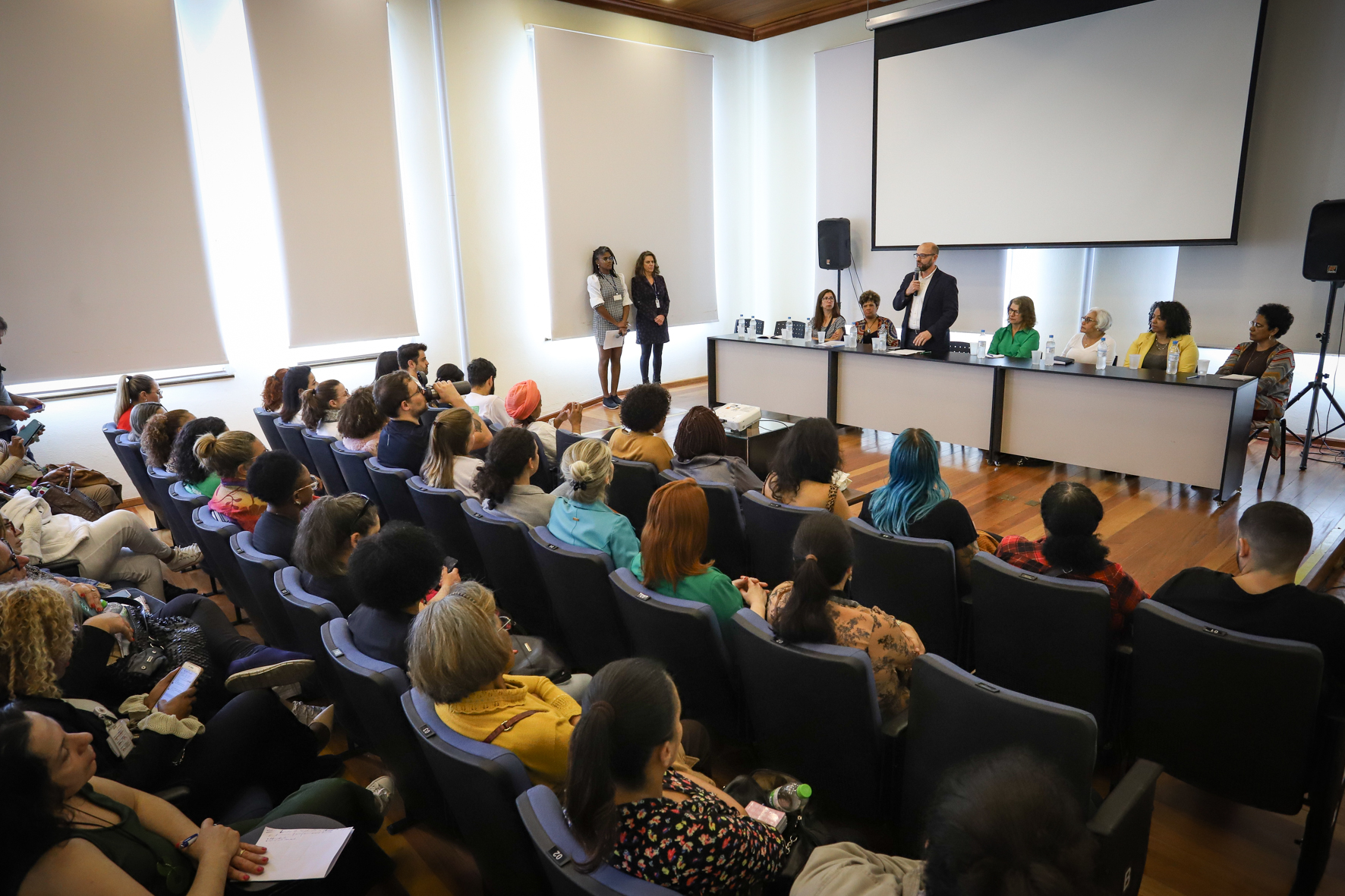 Também integraram a mesa de abertura a diretora de Atenção Primária da SMS, Vânia Frantz; a representante da Secretaria de Atenção Primária à Saúde e da Coordenação Nacional de Atenção à Saúde da População Negra do Ministério da Saúde, Elaine Oliveira Soares; a coordenadora da seção de hemoglobinopatias do Hemocentro do Rio Grande do Sul e do Departamento Estadual de Sangue e Hemoderivados, Giovanna Diaz; a coordenadora de Políticas Públicas de Saúde da área técnica de Saúde da População Negra, Gisele Martins Gomes; e a coordenadora da Comissão de Saúde da População Negra do Conselho Municipal de Saúde de Porto Alegre, Maria Letícia Garcia.
