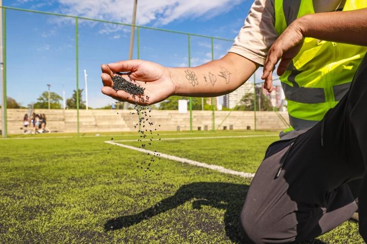 Limpeza – O primeiro passo realizado nas quadras foi a limpeza dos resíduos que vieram com a água, como galhos, troncos e garrafas plásticas. O serviço foi feito pelas equipes do Departamento Municipal de Limpeza Urbana (DMLU). Através de uma doação da Secretaria Municipal de Obras e Infraestrutura (Smoi), foi adicionada areia nas quadras para qualificar o terreno a fim de receber o granulado de borracha. A adotante do espaço e responsável pelas manutenções nas quadras, o Hospital Mãe de Deus, realizou o trabalho de colocação da borracha em substituição ao material que foi perdido com a umidade.